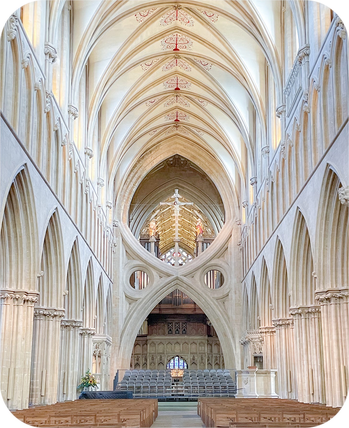 On a much happier note, there’s lovely, light-filled Wells Cathedral.