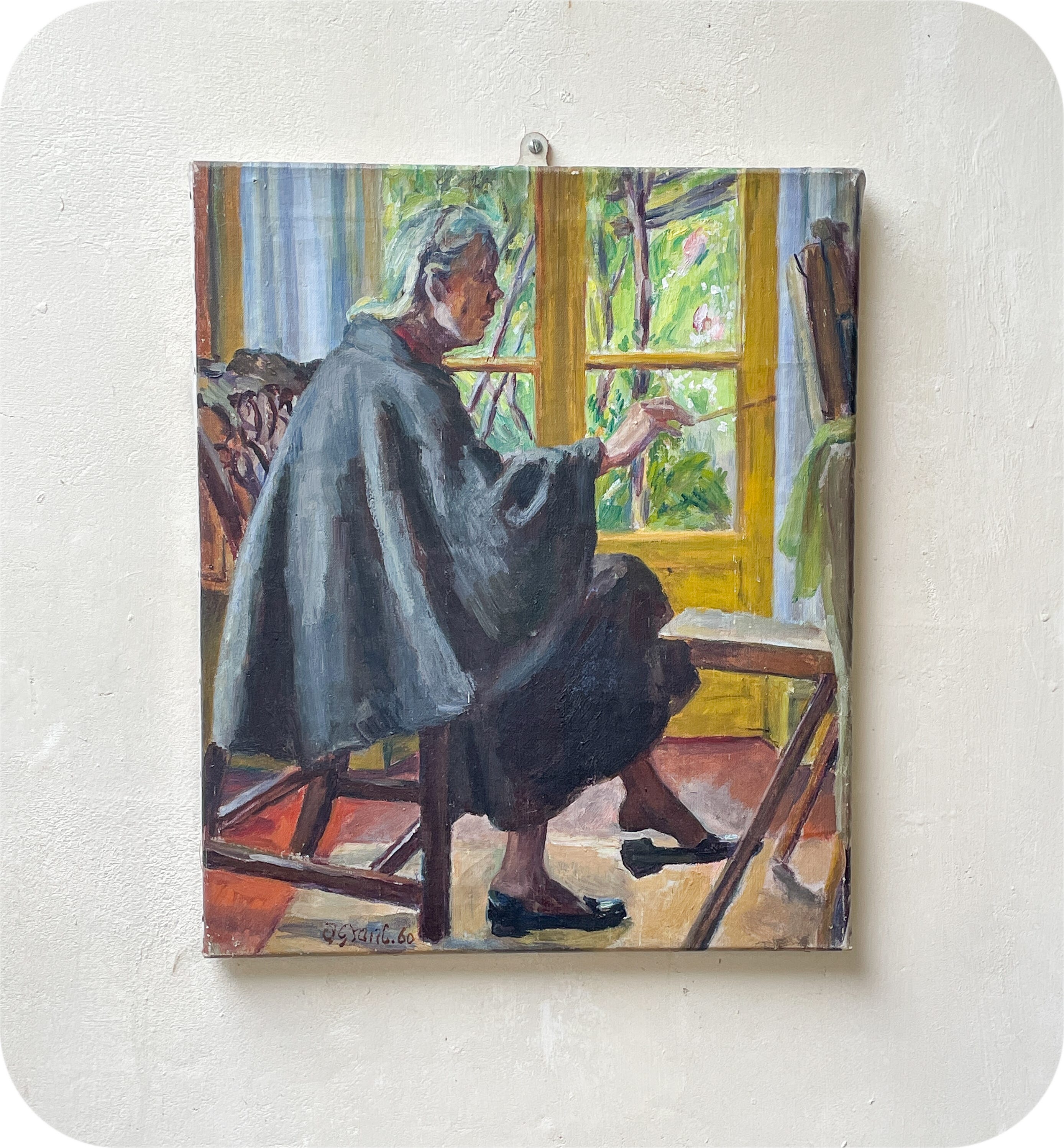 As we turn the corner to leave, a small portrait of Vanessa Bell by Duncan Grant, painted in the last year of her life catches my eye. They were visiting friends in the south of France, and Vanessa is sitting in front of an easel in a light-filled room. Behind her is a window, and flowering trees past that. It’s such a moving portrait of Vanessa: her aging shoulders ever so slightly hunched, but still graceful as can be - paintbrush delicately in hand. The affection of the painter for the sitter is palpable, and I find it very moving. I think about what Vanessa said about her life being an odd one, and it’s true. It was unconventional in so many ways.