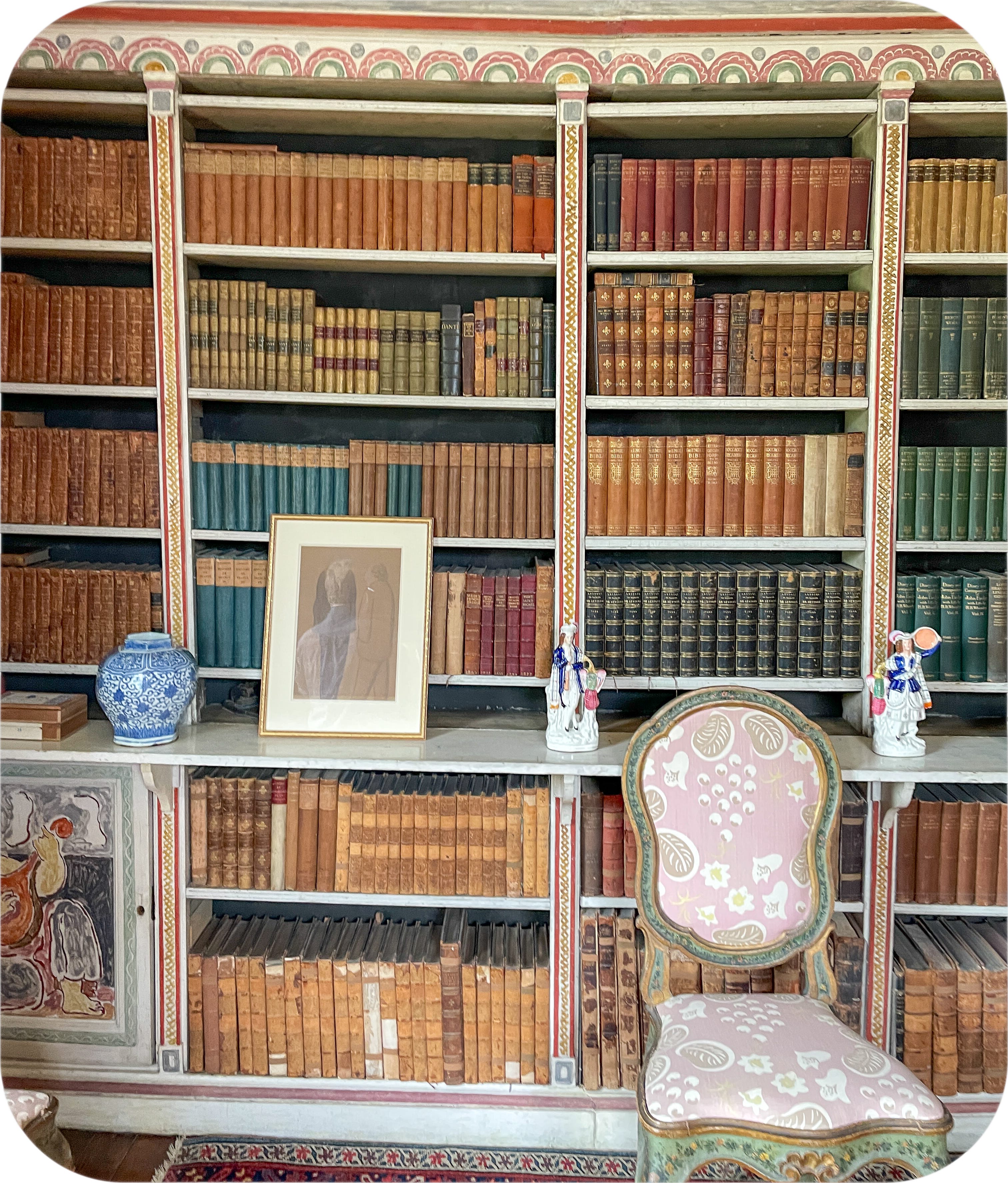 The artists who lived at Charleston obviously spent a great deal of time and energy on decorating it. But it feels like they decorated it to please themselves, and not anybody else. They weren’t trying to make an impression. Souvenirs from their travels are scattered all around, as are paintings and sculptures of and by family and friends. The whole house is filled with books of every kind.