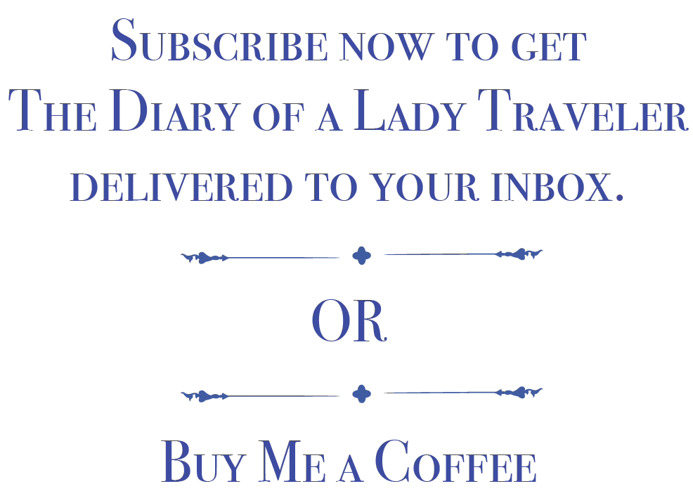 PS - If you enjoyed this letter, please consider becoming a subscriber to have The Diary of a Lady Traveler delivered to your inbox. Subscriptions are free, unless you choose otherwise. Absolutely no pressure at all, but if you’d like to support my writing, I’ve added a virtual tip jar as well: you can find the “Buy me a coffee” button below. Thank you for reading!