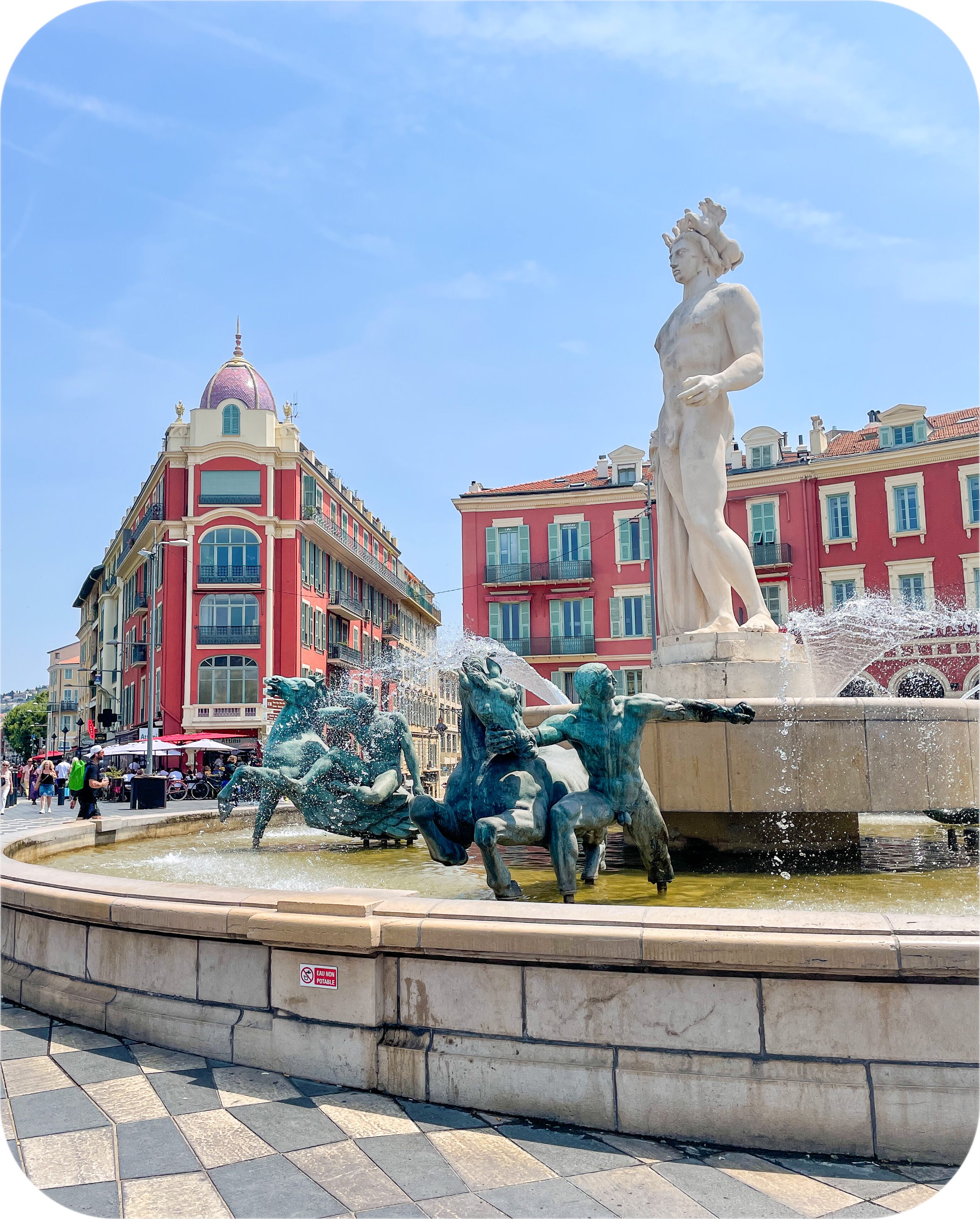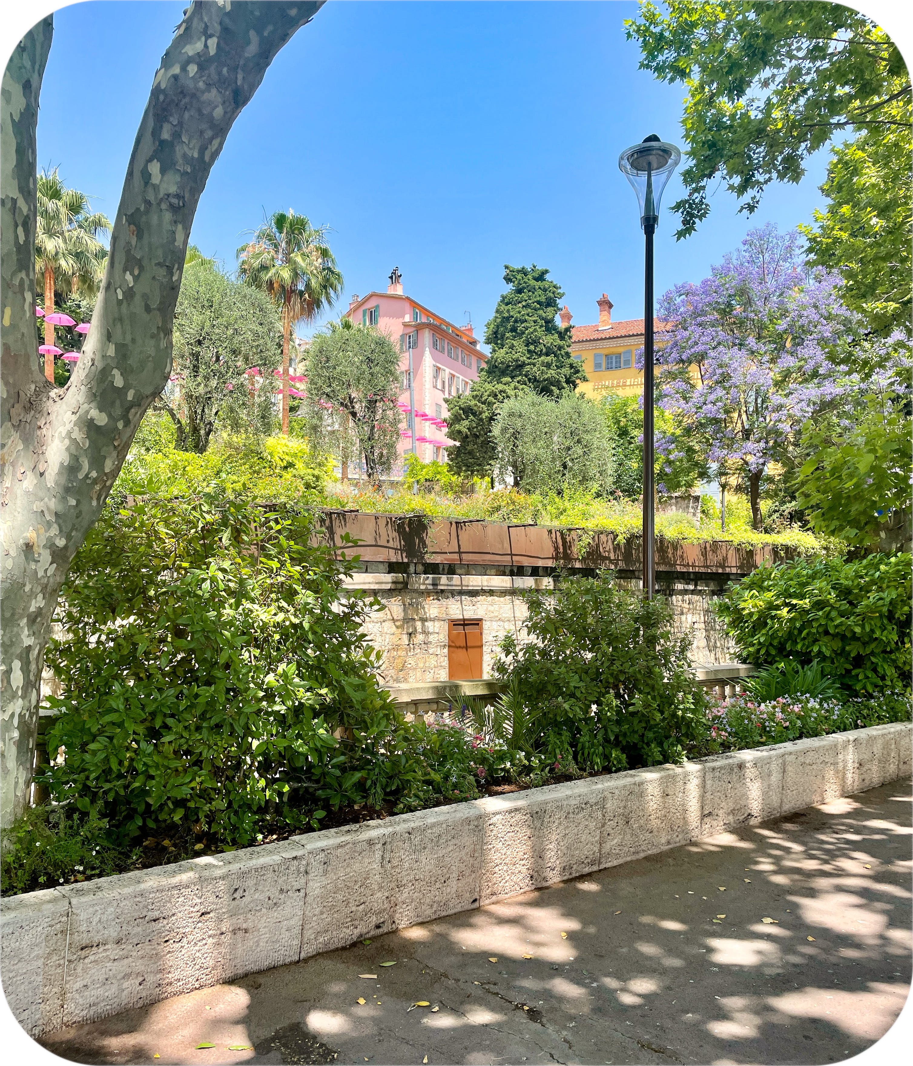 The next day I take the train from the pretty pink train station in Grasse down to the coast and over to the city of Nice, passing through Cannes and Antibes on the way. And I am here to tell you that the French Riviera does not look very glamorous from the train. I am reminded of Somerset Maugham’s description of the Riviera as “a sunny place for shady people.” There are a lot of modern high rises, many of which look slightly past their prime and, honestly, a little grimy. I am quite sure that there are a lot of very fancy people staying at very fancy places somewhere very near here, but those people are not taking this train. I am happy to get off the train in Nice, one of the largest cities in France, and hop the tram (oh, how I and my tired feet love a tram) down to the old town and the beach.