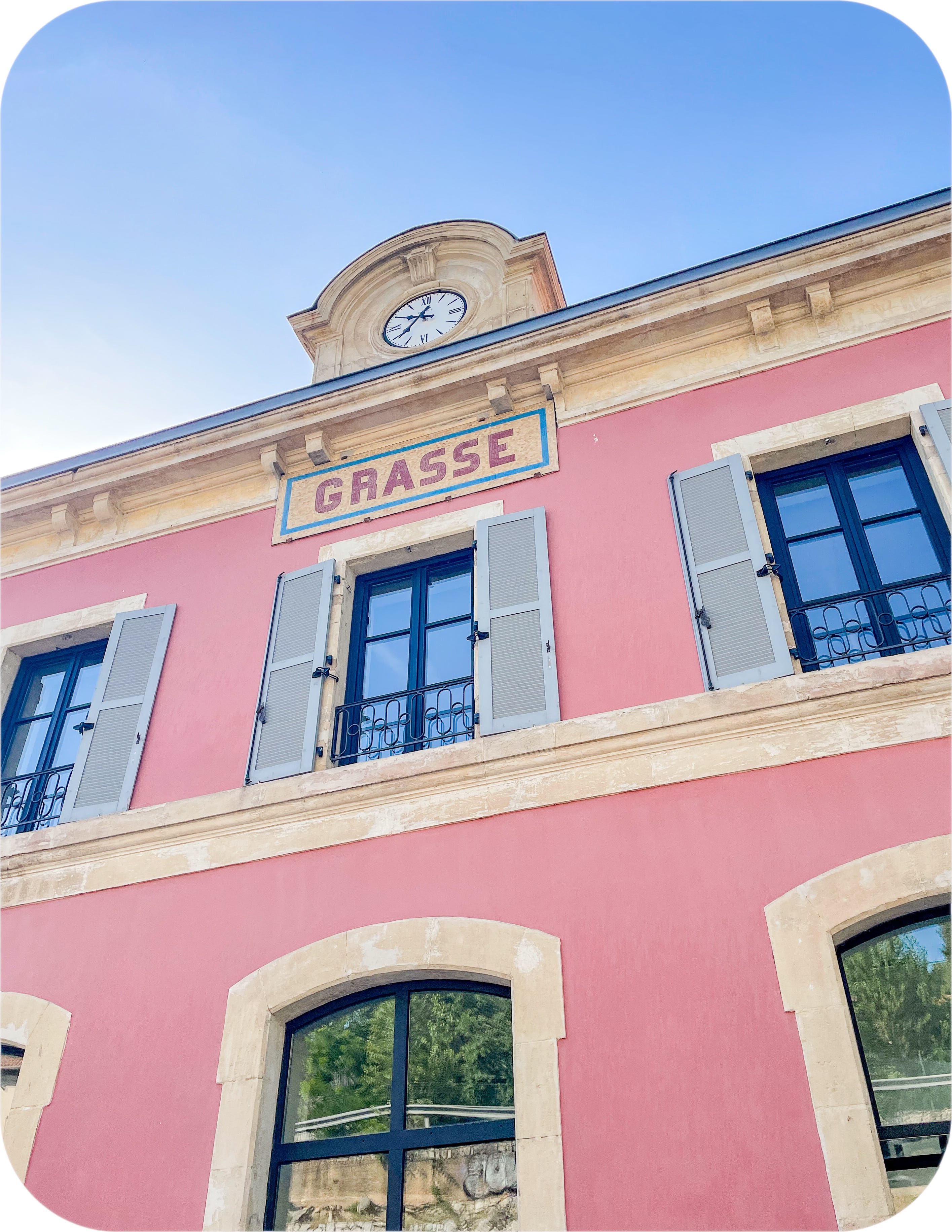 I ride the train back to Grasse, and take a photo of the pink station before getting in my car to drive home to Arles. The pink of Grasse suits me more than the blue of Nice, I find.