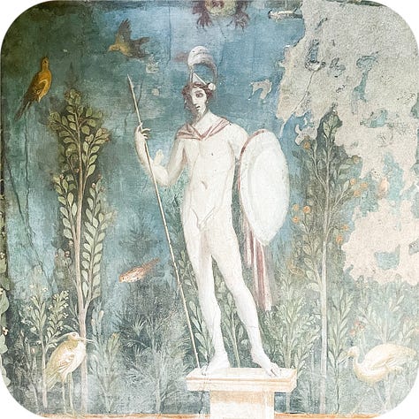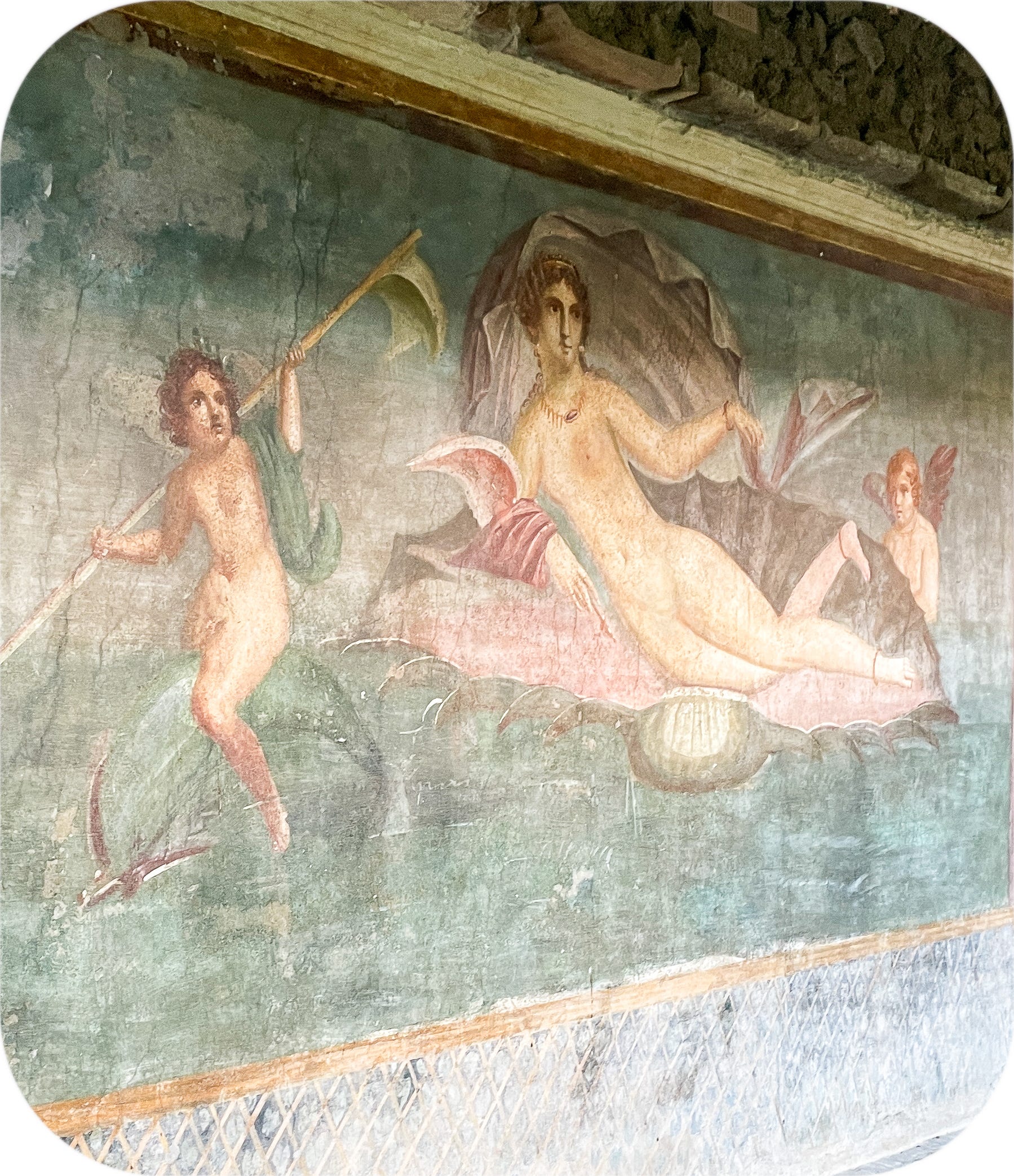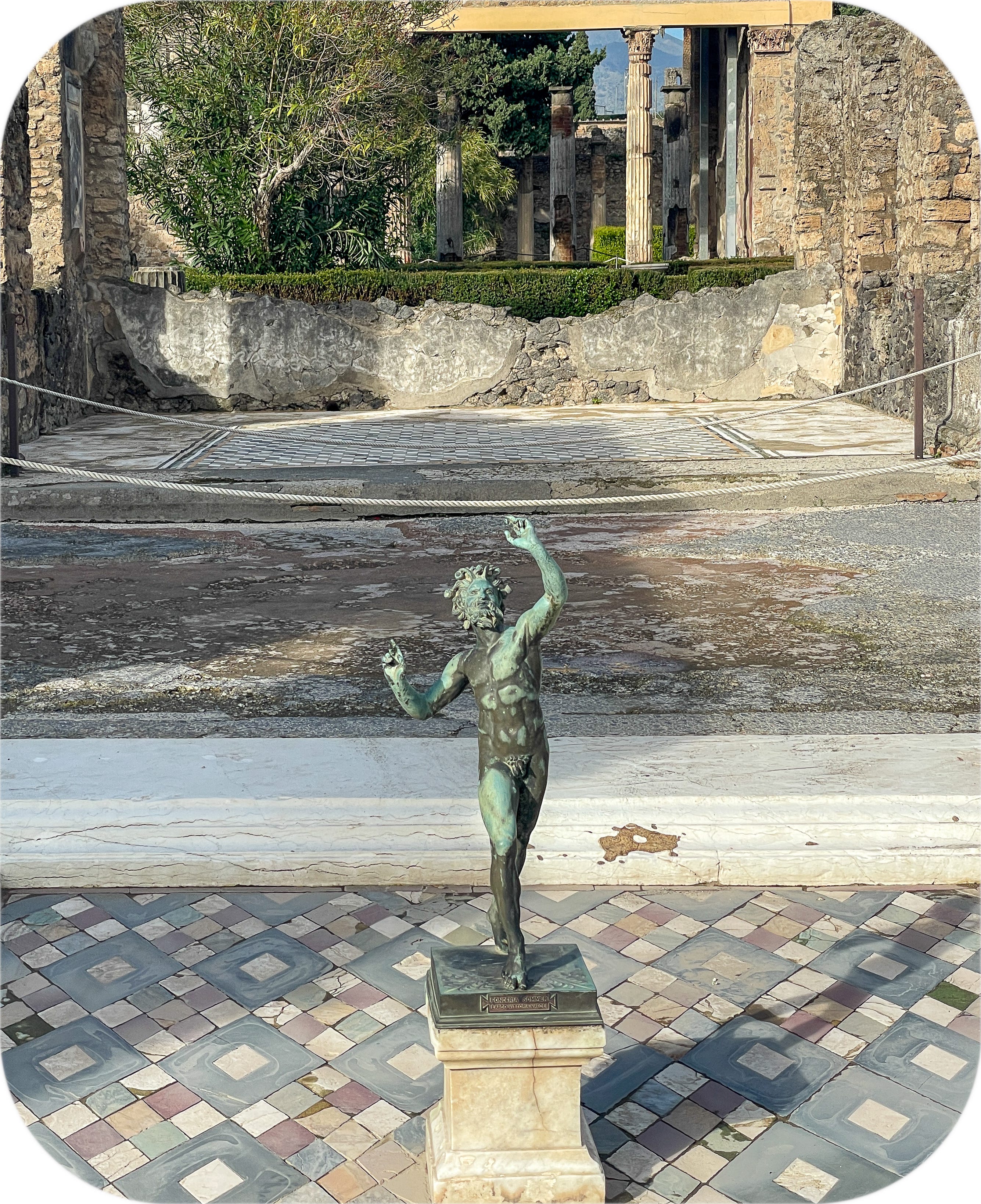 Nowhere does the daily life of Pompeiians come to life more vividly than in the houses and villas that line the side streets. Some of them have evocative names, like The House of the Faun - named for a small bronze sculpture of a faun found in its foyer, and The House of the Tragic Poet. It is the wall paintings that are the most striking, of course - even if several of the houses with the most well-preserved frescos are closed on the day that I visit.