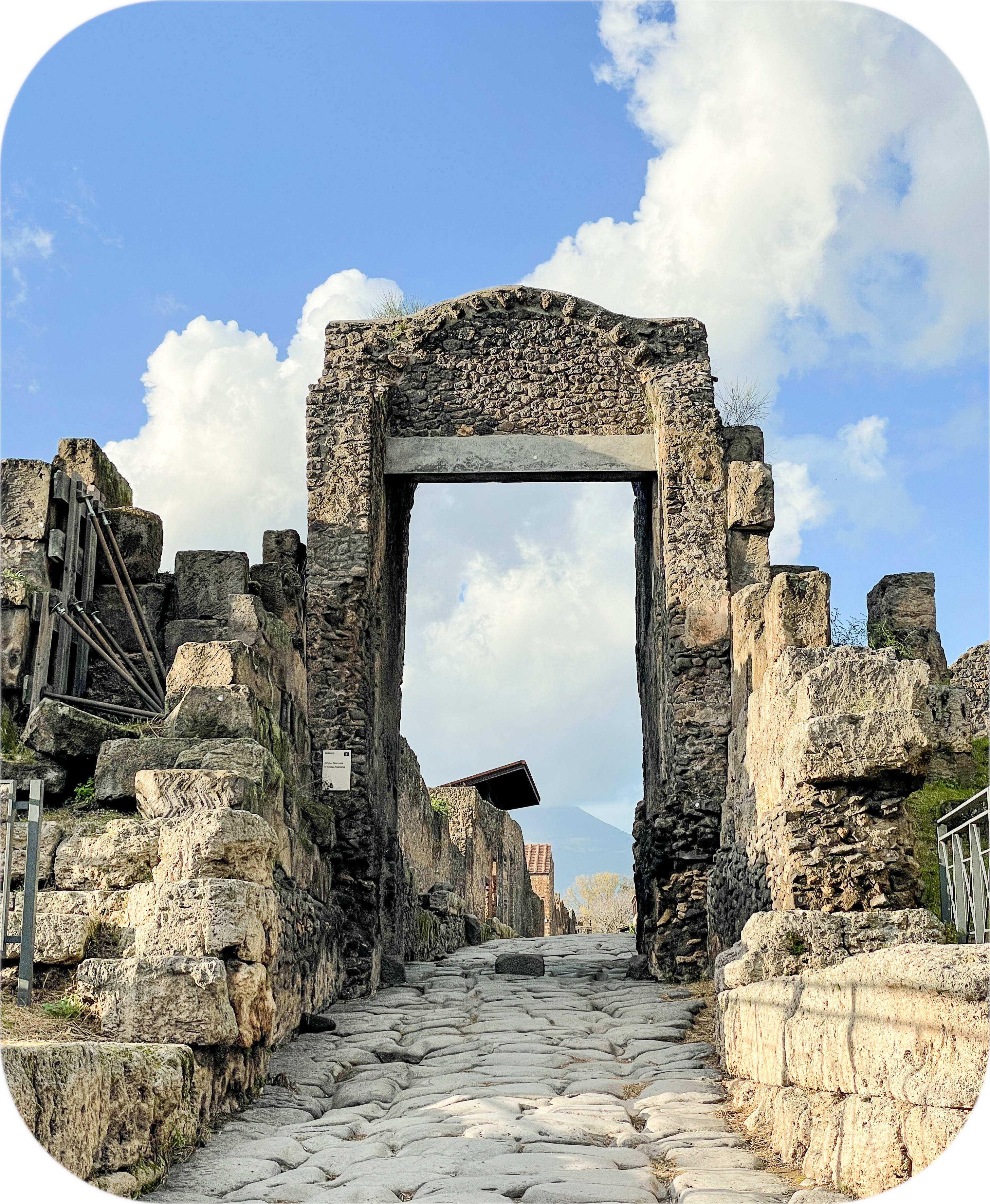 As I enter Pompeii through the Marina gate, the first thing I see is a cluster of public sites: temples to Venus, Apollo and Jupiter, the Basilica (a municipal building, not a church), and the Forum. Past that, however, are the neighborhoods: a sprawling grid of intersecting streets. The stone streets are patterned with deep ruts, created by decades of regular chariot traffic. As I stand and look at a particularly deep rut, something occurs to me that should have been obvious: this was a city. Not a town or a village, but a city of approximately 12,000 residents. A city that had been there for at least 500 years before the event that made it famous. Walking down the streets, I try to imagine the city before the eruption.