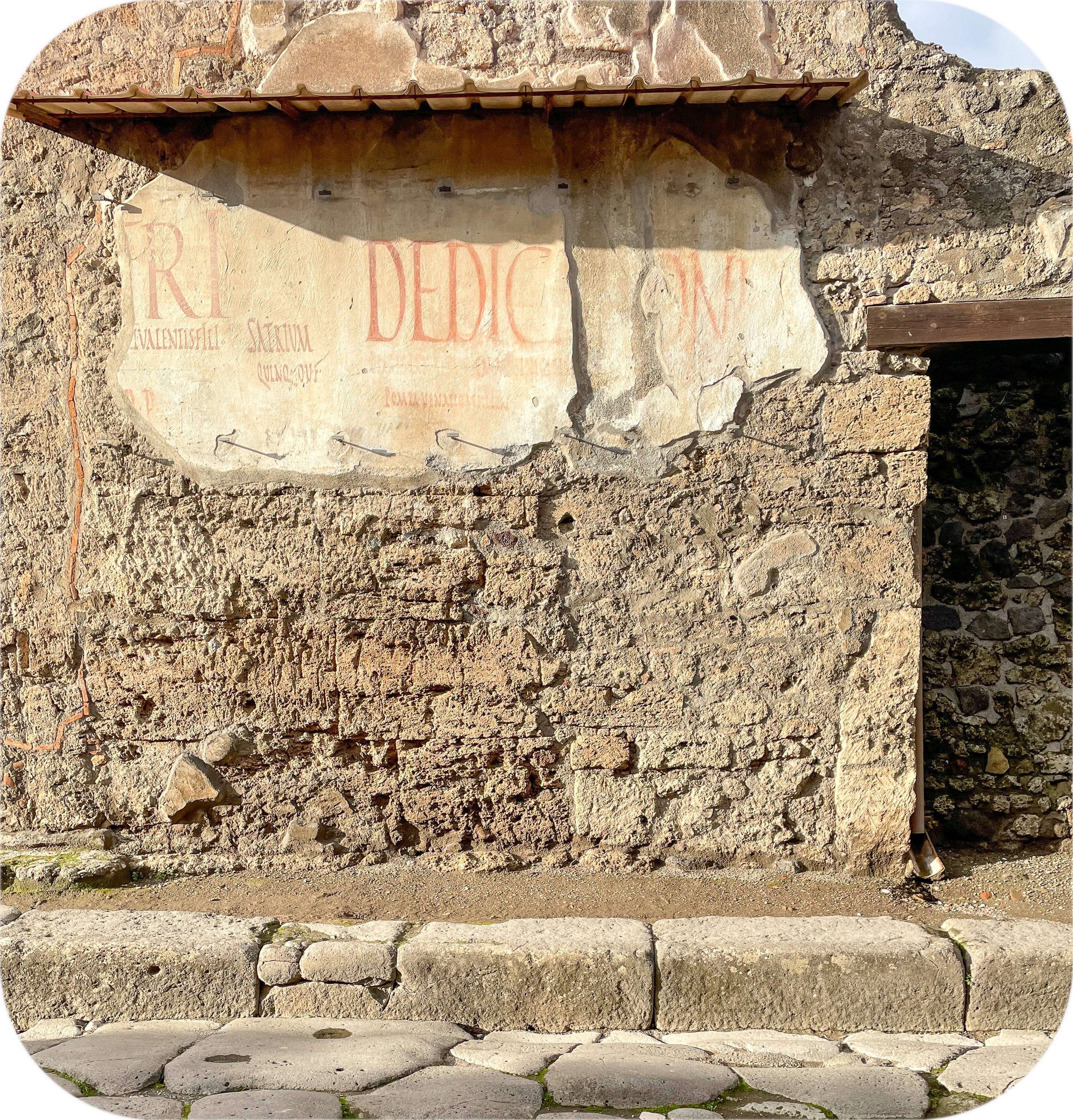 It turns out there is writing all over Pompeii: more signs, but also lots and lots of graffiti. I learn that some of the graffiti is friendly - it was not uncommon to visit a friend’s house and leave a few lines of poetry on a wall in his foyer, for example. Still, it is the bathroom-and-bedroom graffiti that gets the bulk of the attention. Pompeiians: they were just like us! we think. The more things change, the more they stay the same.
