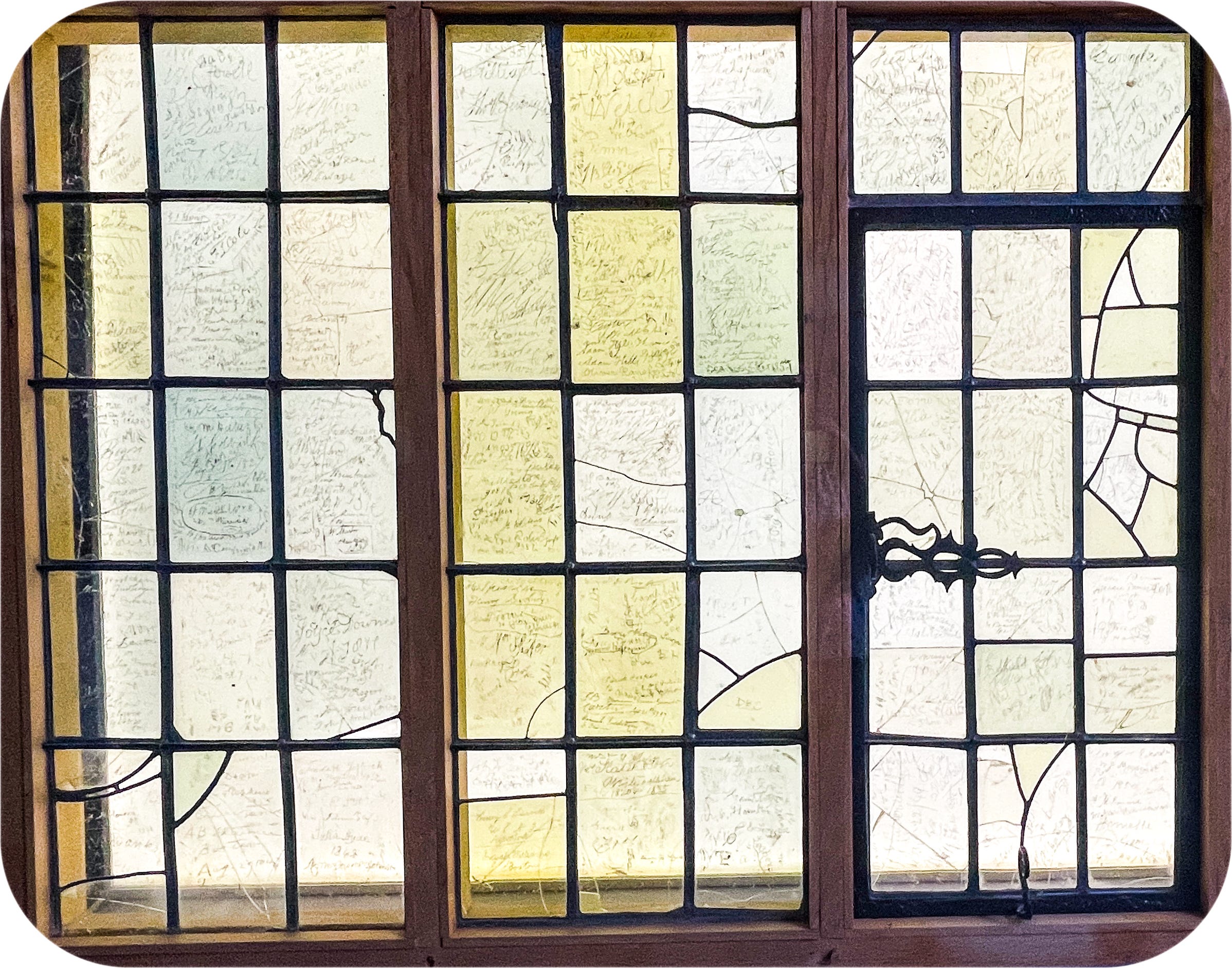 For centuries, visitors to Shakespeare’s birthplace etched their names onto the panes of glass of the window in the room where he was born. Old photographs show that not only did they scratch their names into the glass, they covered the walls with pen and paint, too - the wall graffiti has since been covered up by whitewash.