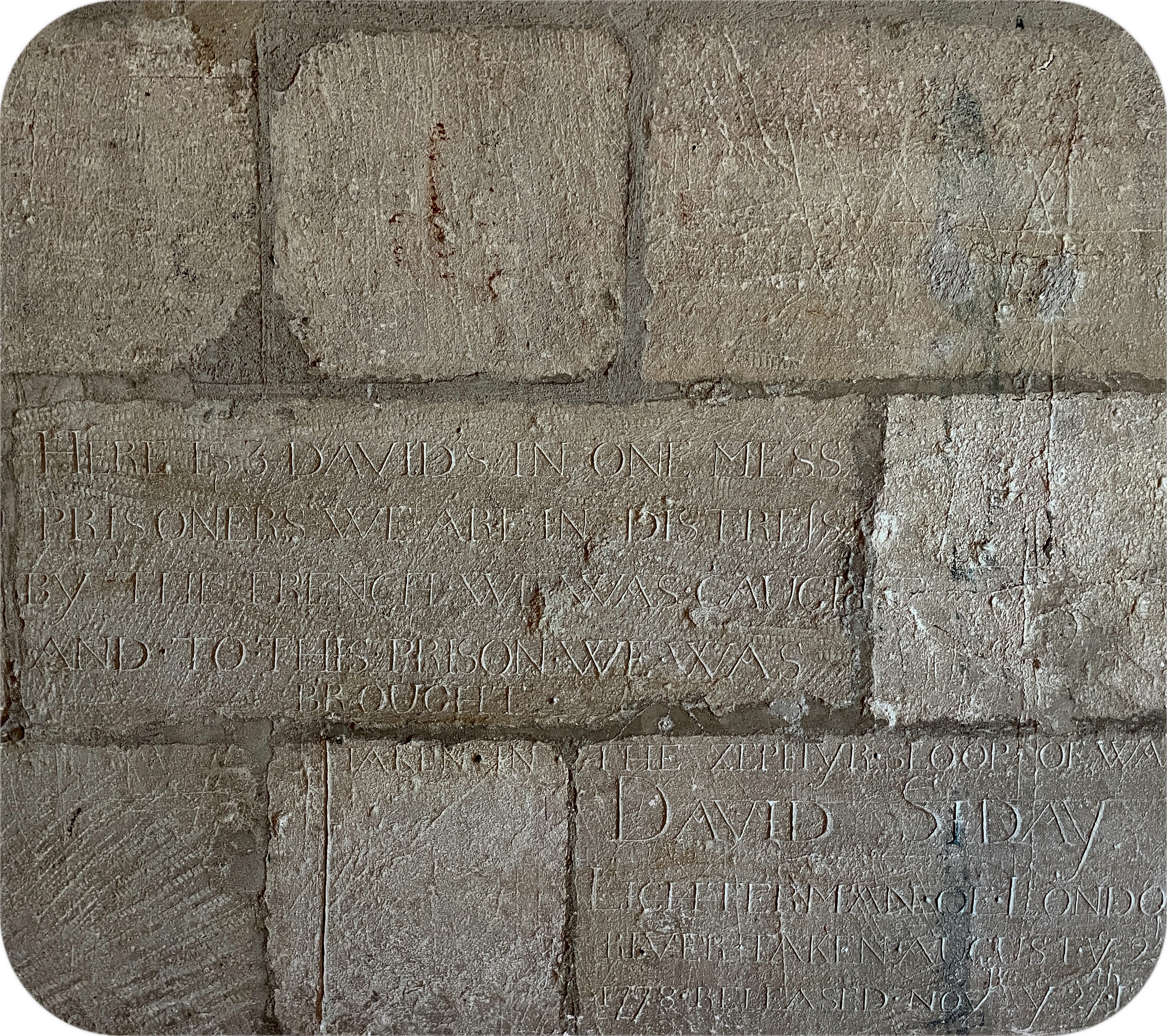 Prisoners from Italy, England, Ireland, Holland and Spain carved their names into these walls.